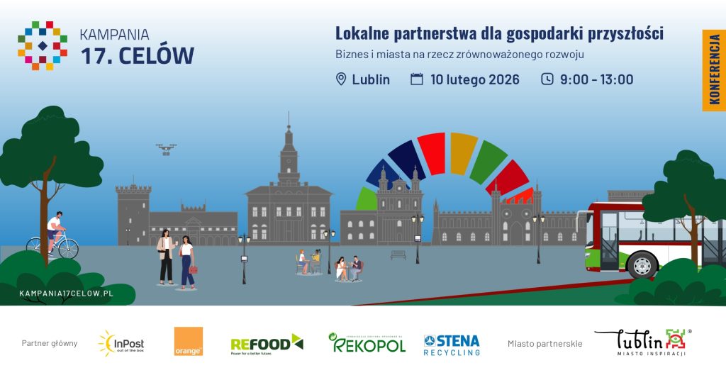 Zachęcamy do udziału w konferencji „Biznes i miasta na rzecz zrównoważonego rozwoju”, która odbędzie się 10 lutego br. w Lublinie w ramach cyklu „17 Celów w Trasie”, wraz z Kampanią 17 Celów.  Wydarzenie organizowane jest przez naszego partnera Urząd Miasta Lublin we współpracy z firmą CSR Consulting. Zapraszamy również do śledzenia informacji w mediach społecznościowych: