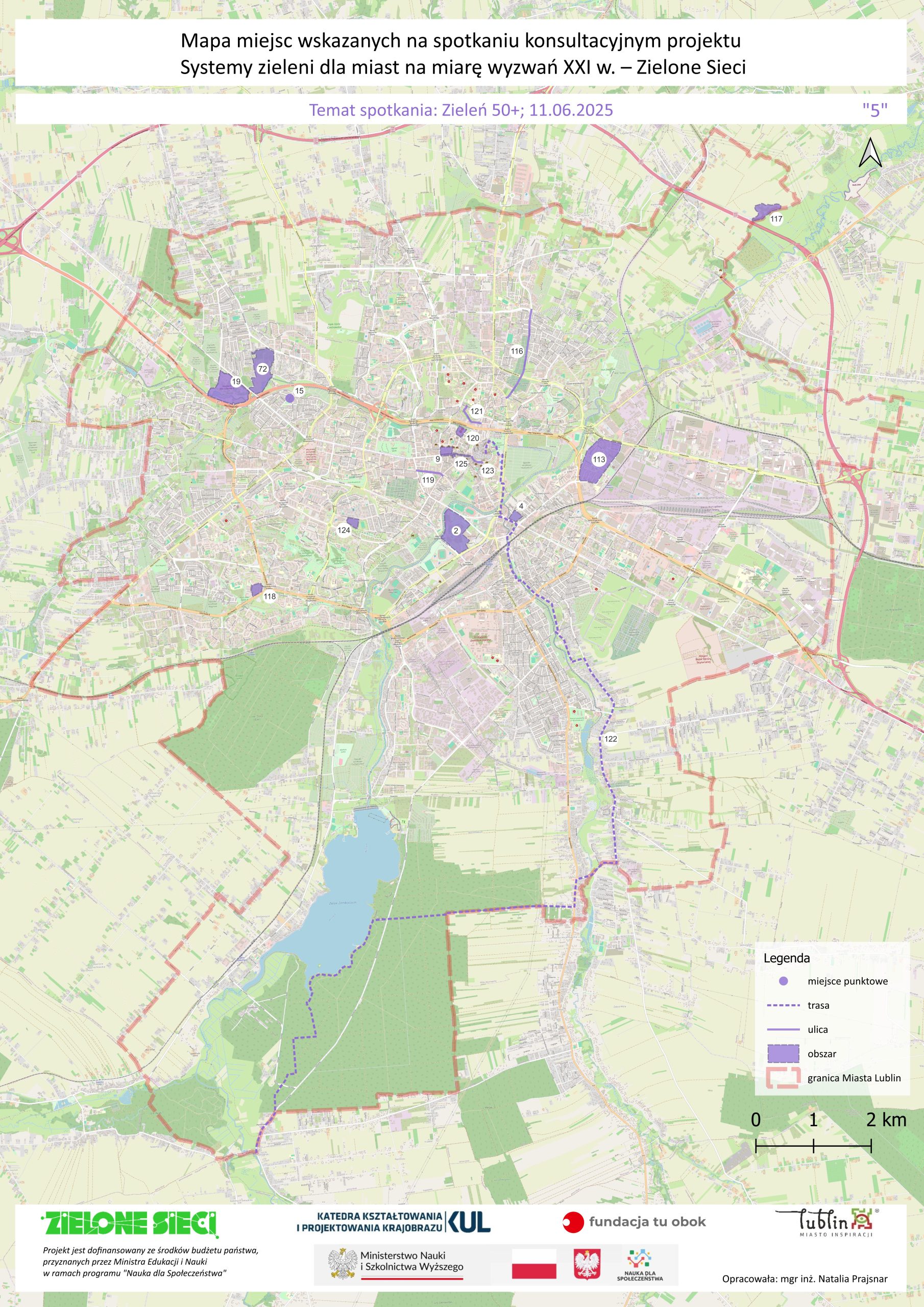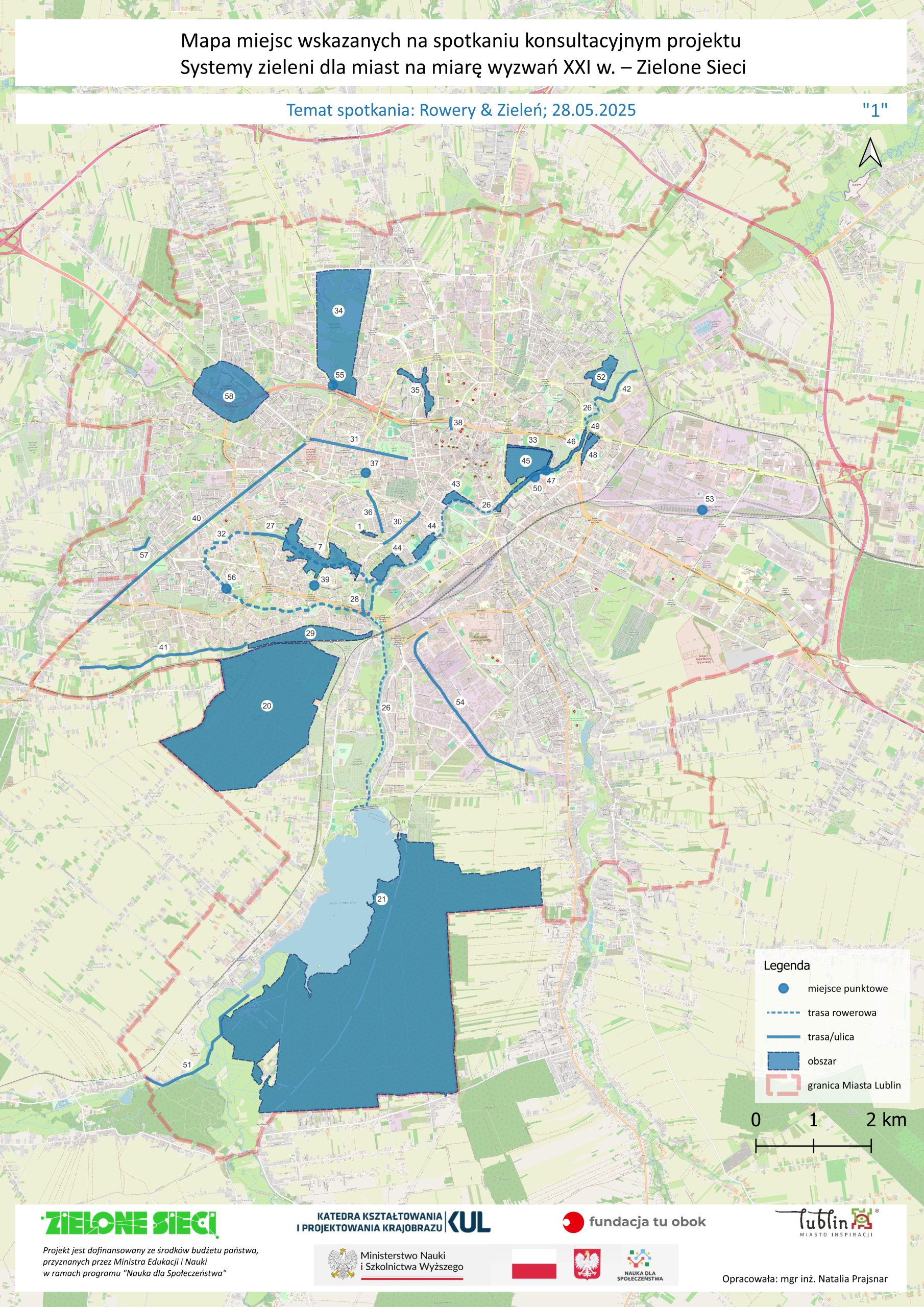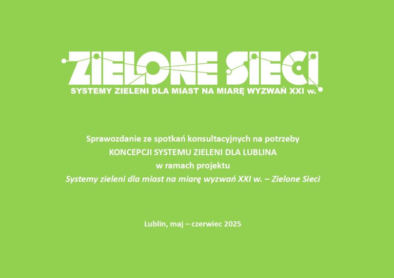 Dziękujemy wszystkim osobom, które w maju i czerwcu 2025 roku wzięły udział w spotkaniach konsultacyjnych projektu Zielone Sieci. Państwa propozycje i wnioski zostaną wykorzystane przy opracowywaniu Koncepcji systemu zieleni dla Lublina oraz Modelu dla Miast. W ramach konsultacji odbyło się osiem spotkań:Zielone Sieci w Porannym Domu Kultury, Rowery & Zieleń, Zieleń dla dzieci i rodziców, Zieleń dostępna dla wszystkich, Zielone miasto dla młodych, Zieleń 50+, Zielone dzielnice, Eksperci w Zielone.