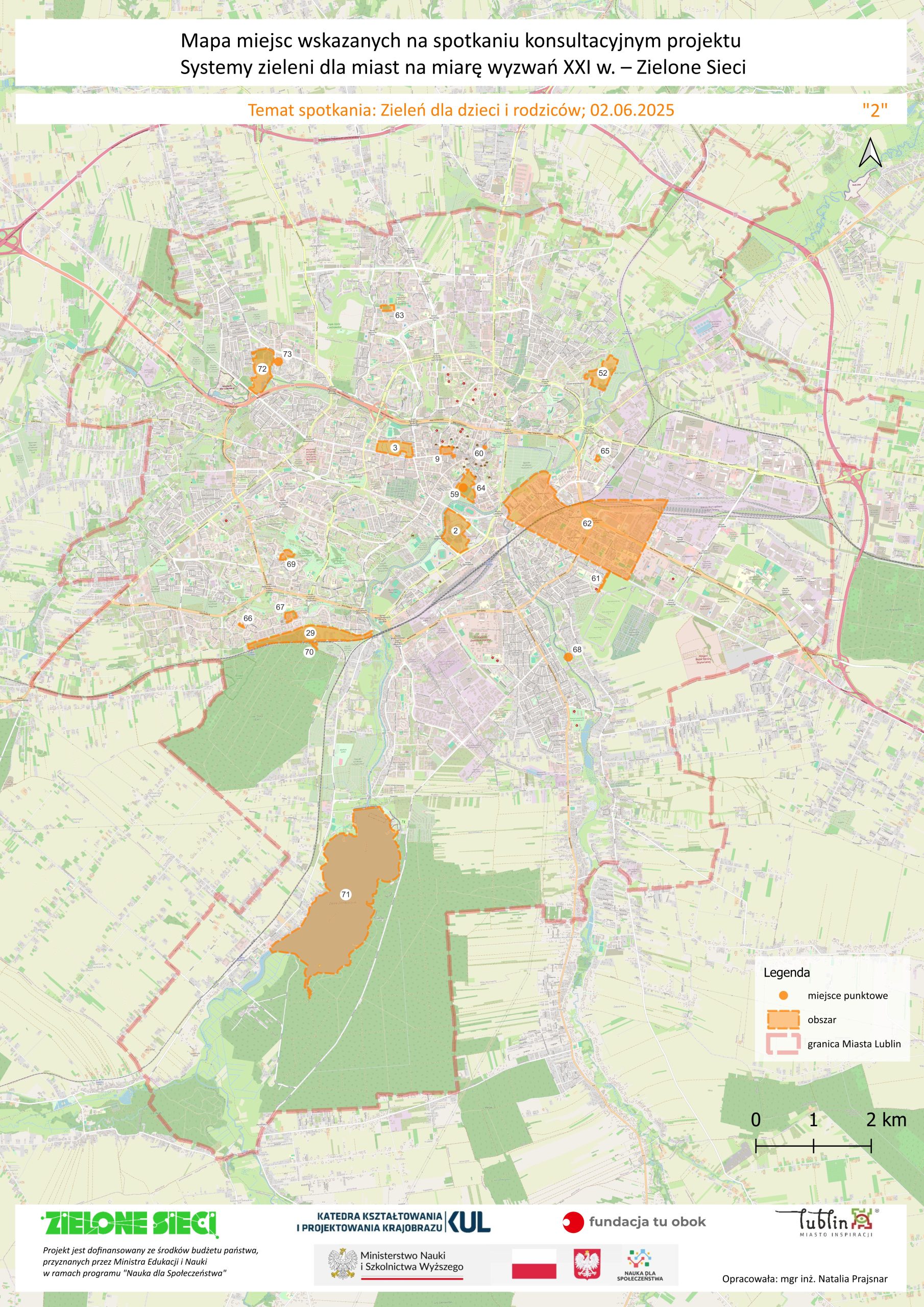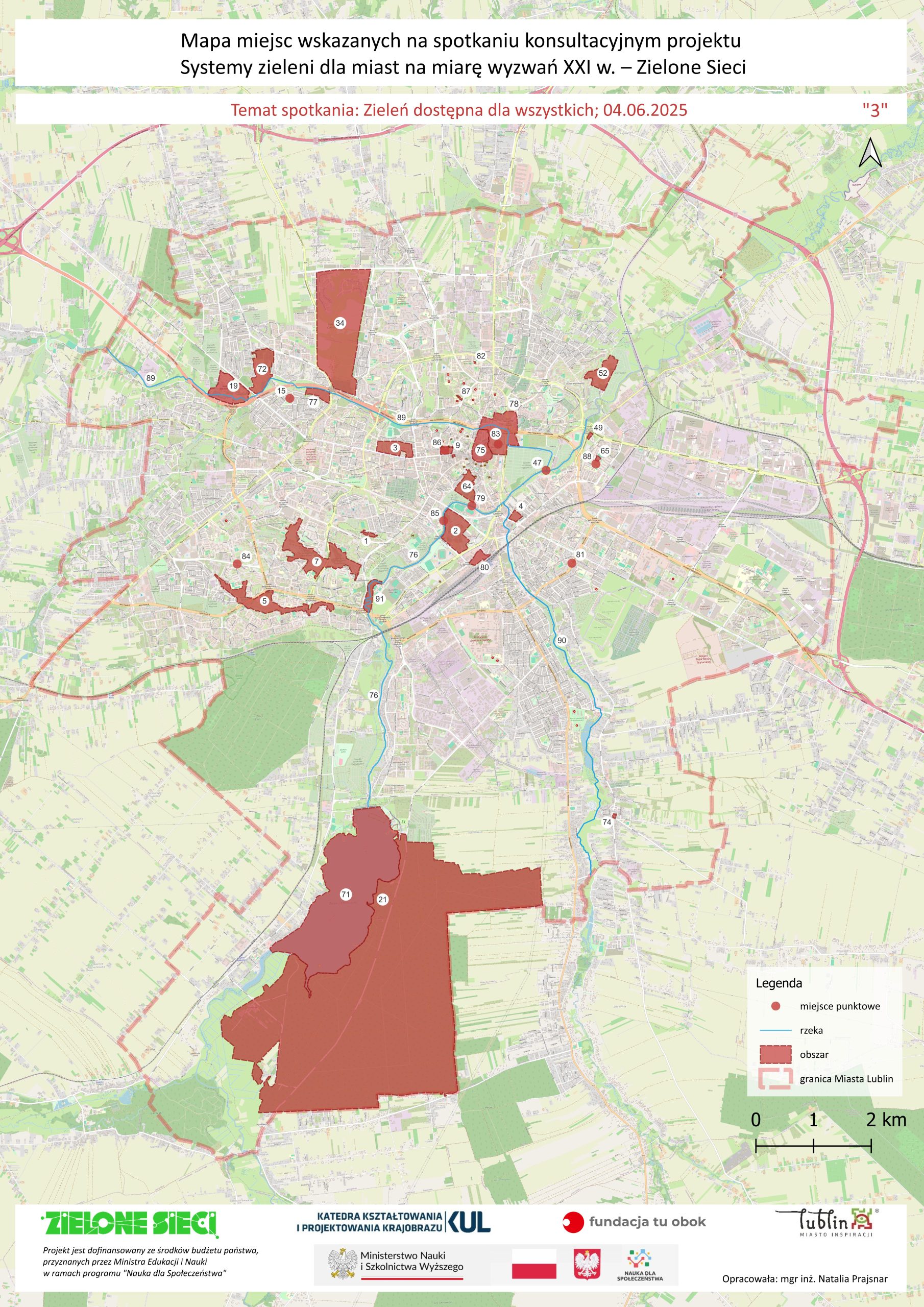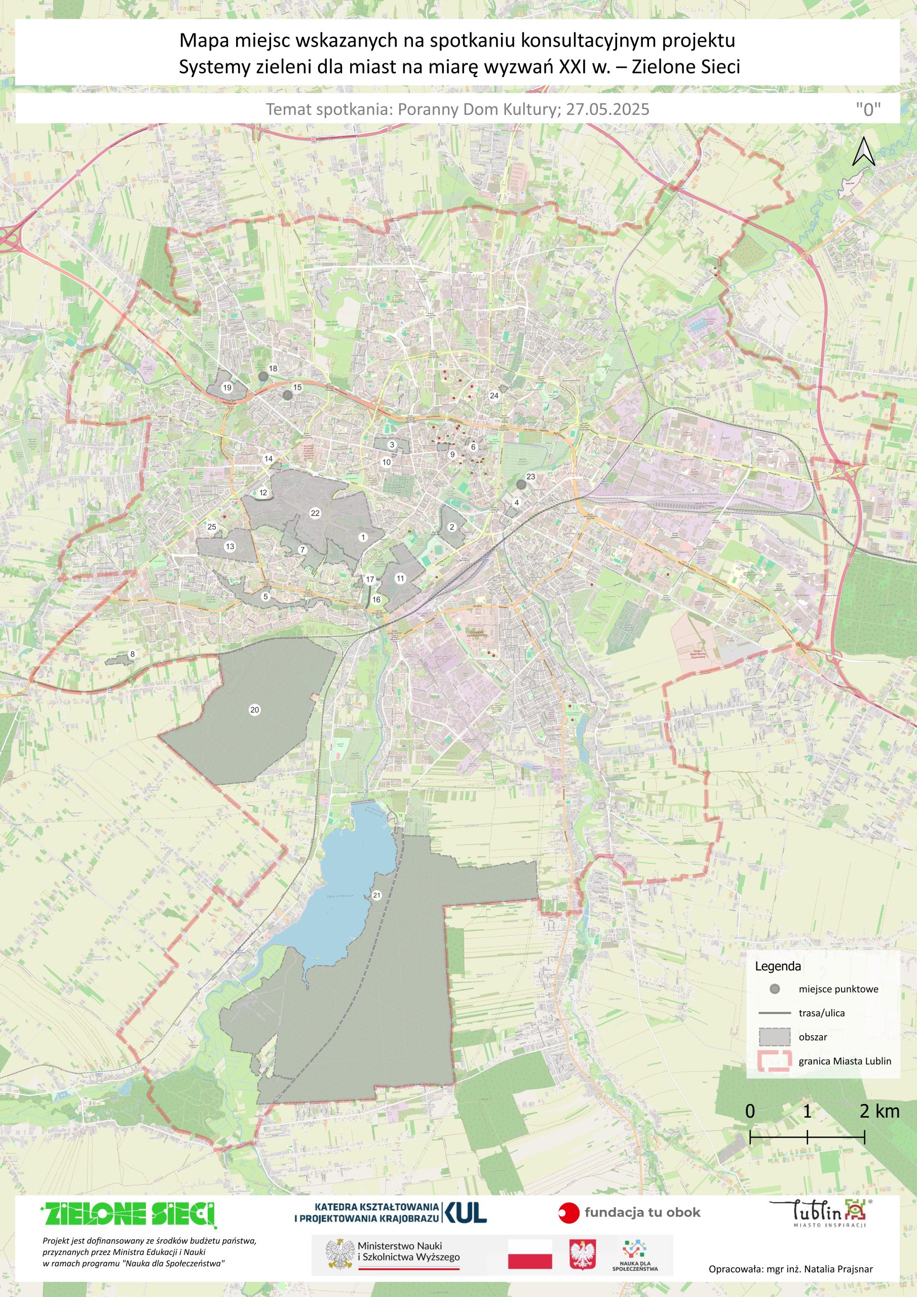 Dziękujemy wszystkim osobom, które w maju i czerwcu 2025 roku wzięły udział w spotkaniach konsultacyjnych projektu Zielone Sieci. Państwa propozycje i wnioski zostaną wykorzystane przy opracowywaniu Koncepcji systemu zieleni dla Lublina oraz Modelu dla Miast. W ramach konsultacji odbyło się osiem spotkań:Zielone Sieci w Porannym Domu Kultury, Rowery & Zieleń, Zieleń dla dzieci i rodziców, Zieleń dostępna dla wszystkich, Zielone miasto dla młodych, Zieleń 50+, Zielone dzielnice, Eksperci w Zielone.